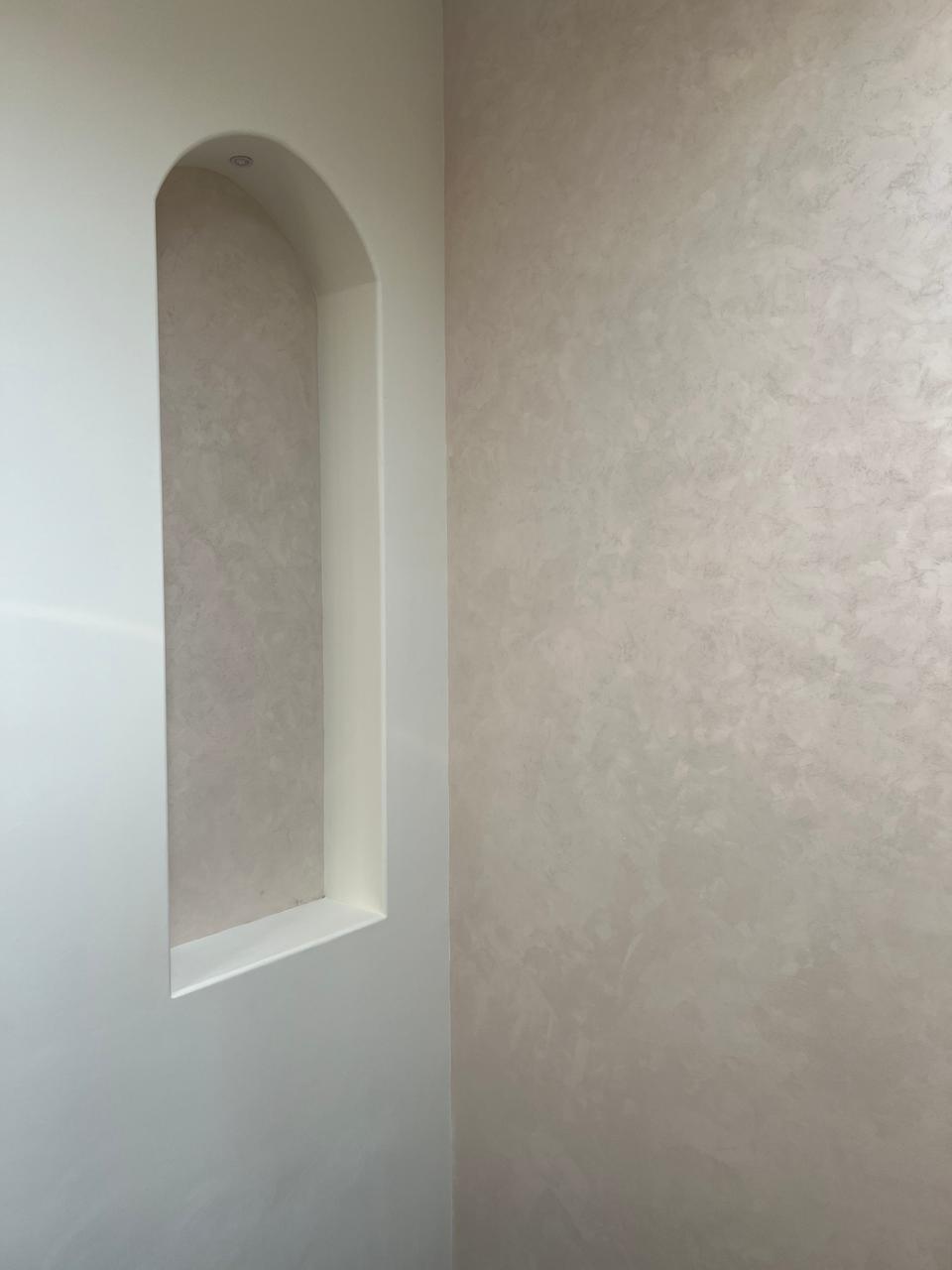 This coating enhances interiors with a subtle sheen and layered movement, creating walls that interact beautifully with light. The result is a sophisticated, contemporary surface that elevates luxury spaces.